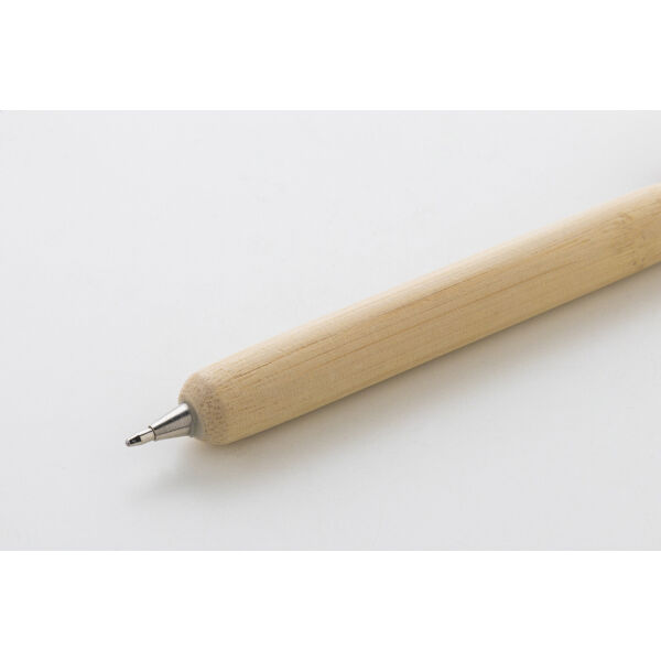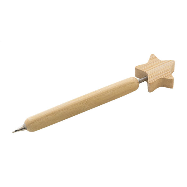 Bamboe, cartoon balpen met kerstfiguur op de bovenkant. Met blauwe navulling.