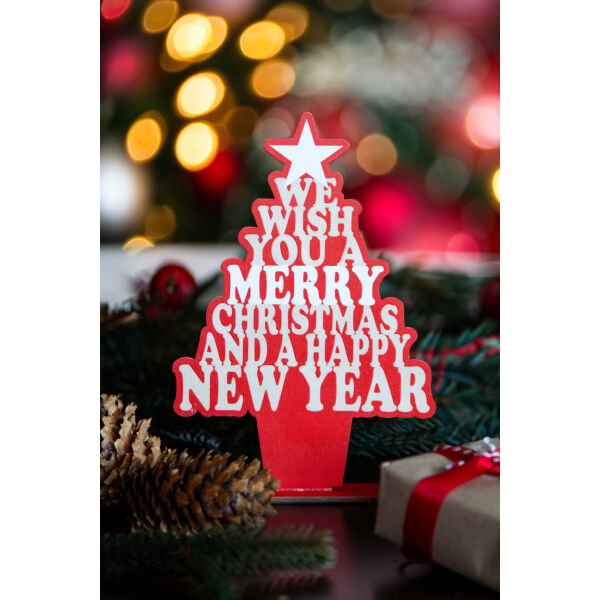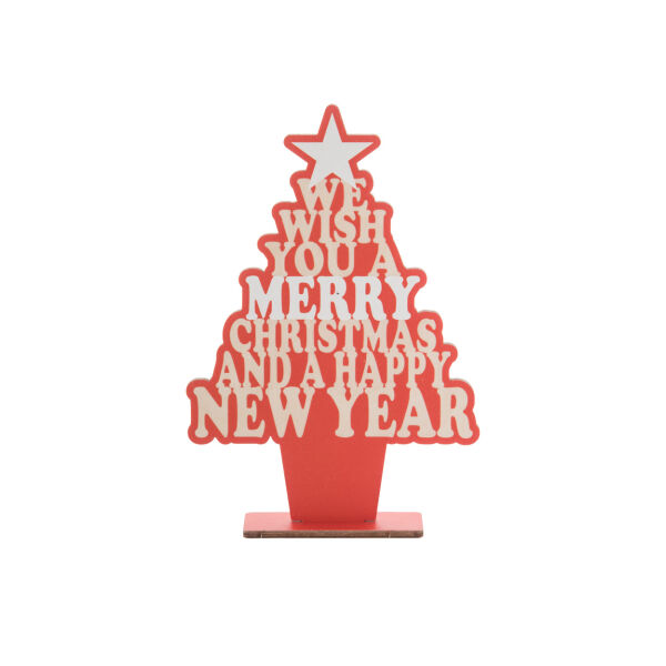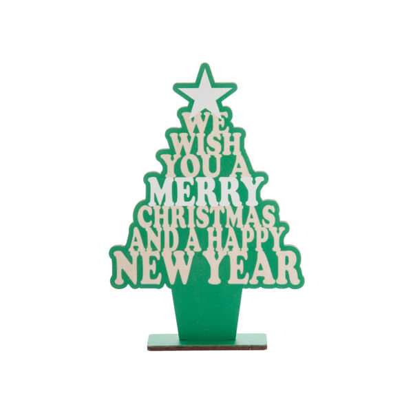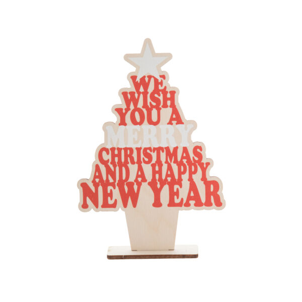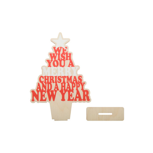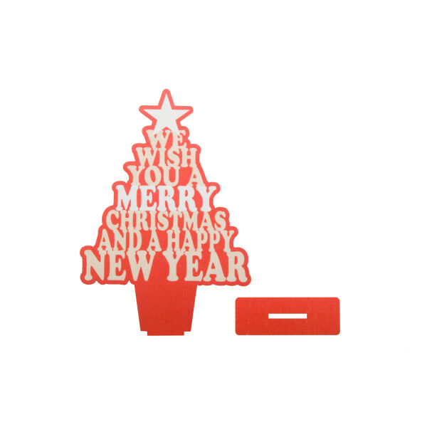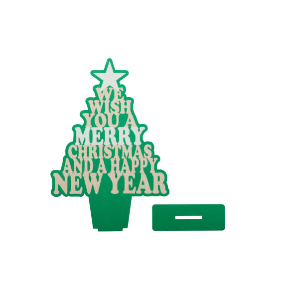 Kerstboomvormige bureaudecoratie van berken multiplex. Plat verpakt geleverd.