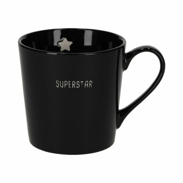 Deze keramieken mok met oor heeft een glanzende afwerking en een inhoud van 370 ml. Op de voorzijde staat de quote: 'Superstar'. De binnenkant bevat een gegraveerd icoon. De perfecte mok om ieder koffie of theemoment een persoonlijke touch te geven!